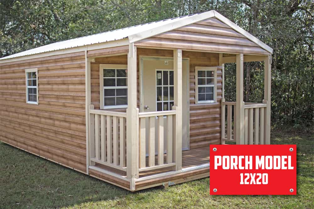 Design Your ShedThis model comes with a 4 ft porch and heavy-duty rails across the end of the building.
